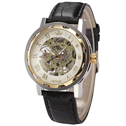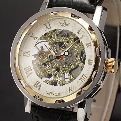 -. Title : Mix&Rock Men Women Classic Hand-winding Mechanical White Hollow Skeleton Dial Dress Gift Watch