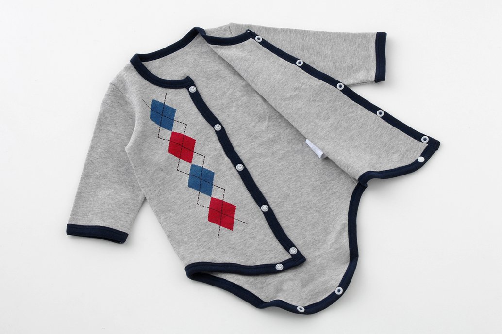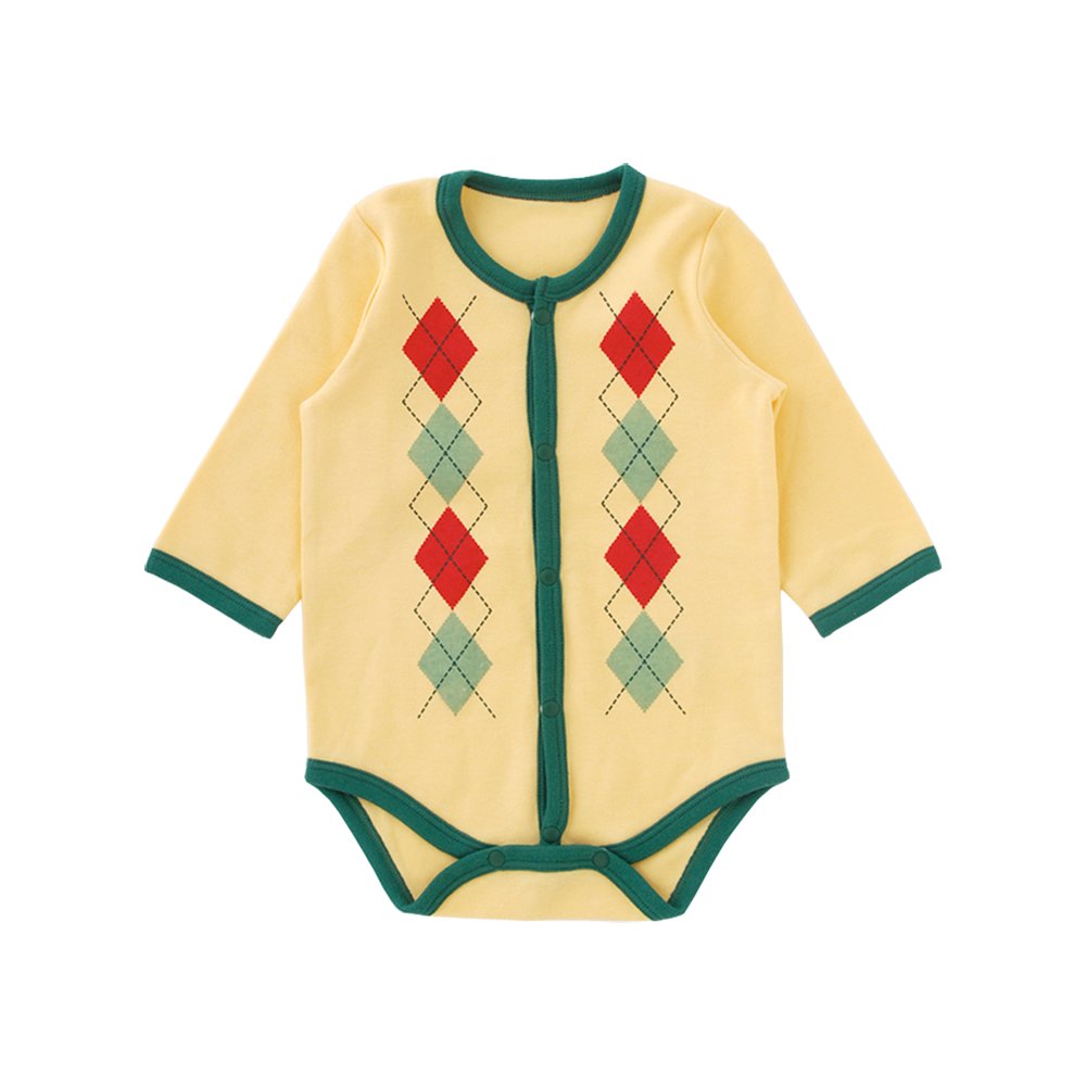 Also recommended for autumn-fashioned outer Argyle pattern Open long-sleeved rompers.