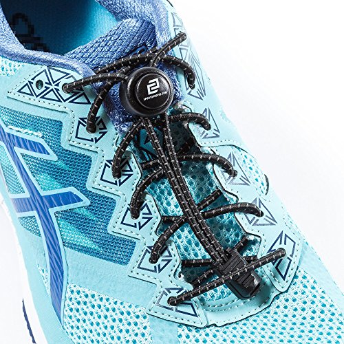 Sport2People No Tie Elastic Shoelaces 1 Pair - Forget About Untied Shoes! Shoe Laces With a Strong Lock Button - Save Your Time and Effort! Reflective Running Gear for Your Best Comfort and Safety
