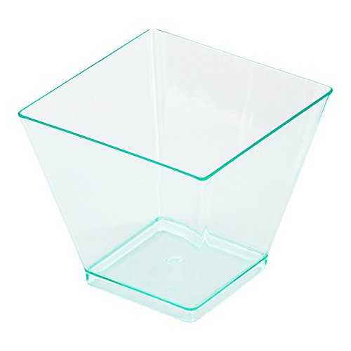 SIZED RIGHT: These small seagreen plastic cups are 2" x 2" x 1.75" in size - perfect for serving delicious mini-desserts or appetizers.
