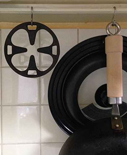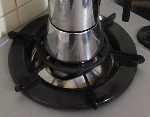 ガスコンロで直火式エスプレッソメーカーや、スキレット、ミルクパン、ケトル、小鍋など小さな物を加熱するときに便利な補助用ミニ五徳。座りが安定し直火式エスプレッソメーカーなどのサイズが合わずに傾くことや転倒を防ぐ。4ヵ所に壁掛けに便利な大き目のフック穴のある仕様。