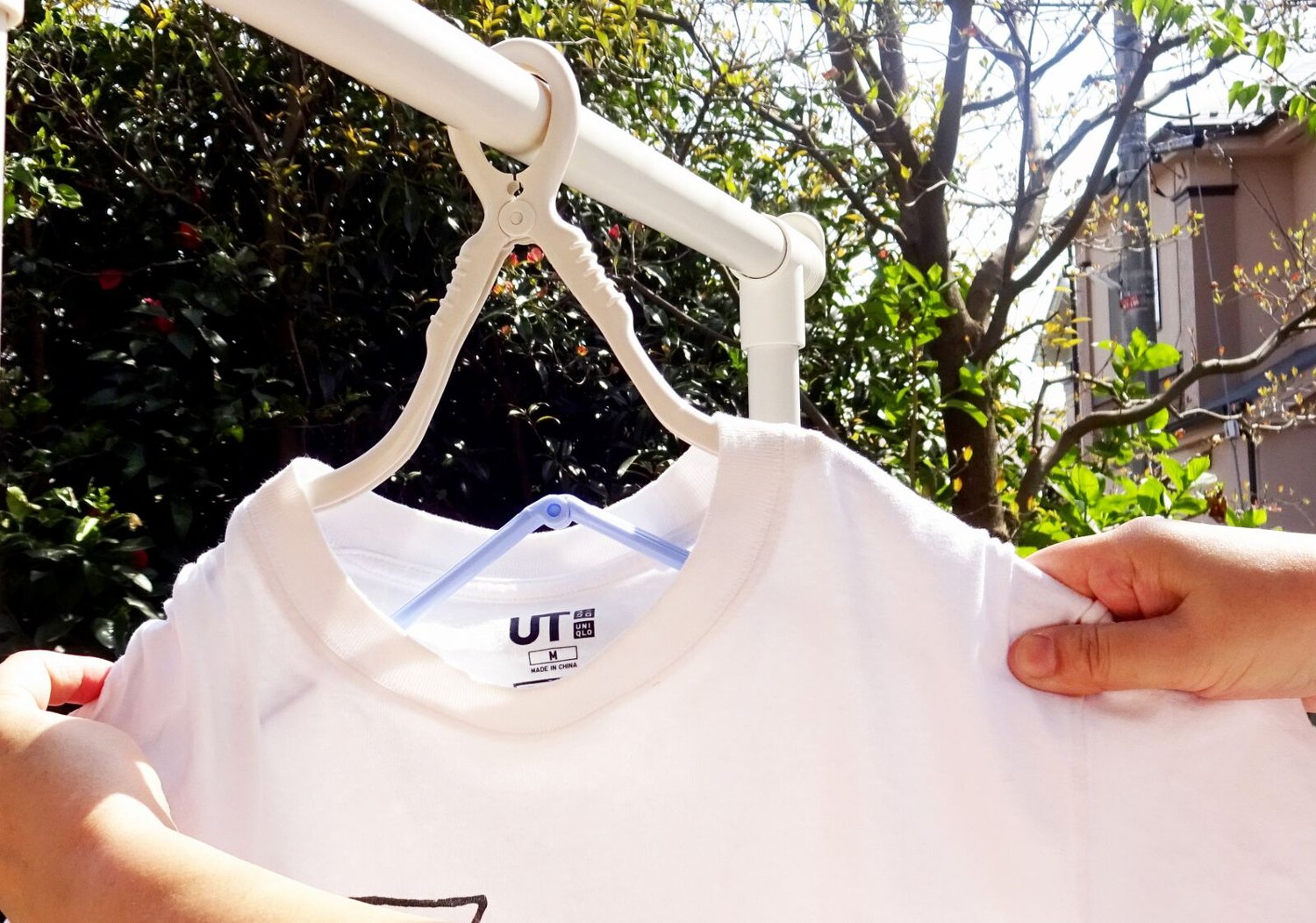 A set of folding hangers that can be dried without stretching the collar of the shirt