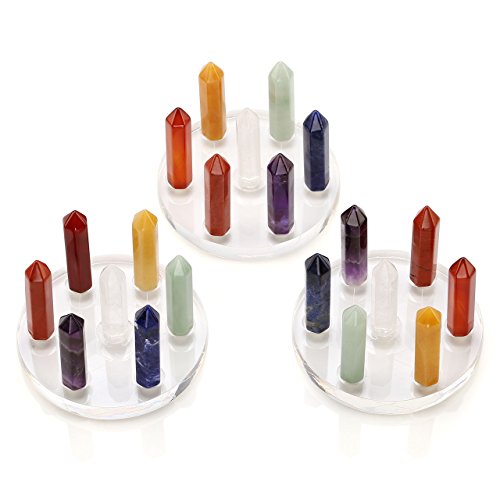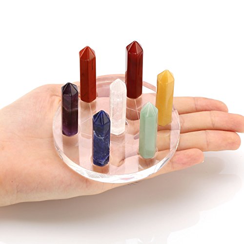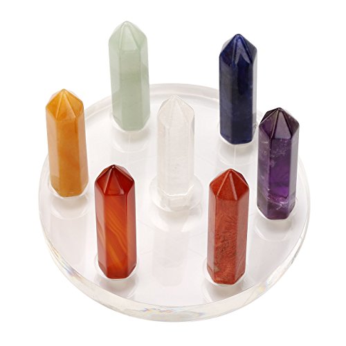 - Chakra Crystal Healing Kit Includes the following chakras: Amethyst, Rock Crystal Quartz, Green Aventurine, Yellow Aventurine, Sodalite, Red Agate, Red Jasper.Stand Materail: Acrylic(Plastic).( It might slightly vary in size, shape and texture for each quartz crystals due to natural quality.)