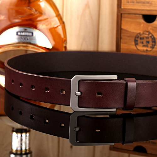 S M L XL XXL XXXL XXXXL XXXXXL, TOTAL 8 sizes fit most people.Belt Strap is 1.5" (38 mm) Wide and about 3.2mm ThickPlease be sure to check the size chart in the image for waist and size matching, it's very important. A perfect casual dress belt for anyone, especially those who are allergic to nickel and hard on their belts! The titanium buckle is nickel free and won't ever cause an allergic reaction. The Italian imported top grain leather is extremely durable and comfortable! Titanium Buckle is 100% nickel free and guaranteed never to test positive for nickel. Because of delicate material make-up, taking care of your leather belt is a must in ensuring its luster and durability. Maintain your favorite leather belt by following a few tricks of the trade: (1) Make sure it fits: Buying a belt that is too large for your waist size is one sure-fire way to ruin it quickly. If too large, the belt will bend around itself which results in small lines and creases.(2) Condition it: Treat it right after you buy it with leather conditioner. (3) Clean it: Over time, leather can develop a small odor. To rid the stink, give it a good once-over cleaning. (4) Don't wear it out: It's best to keep at least two belts in your wardrobe and alternate wearing them.(5) Keep it dry: It's a common known fact that leather and water just don't mix.Feature