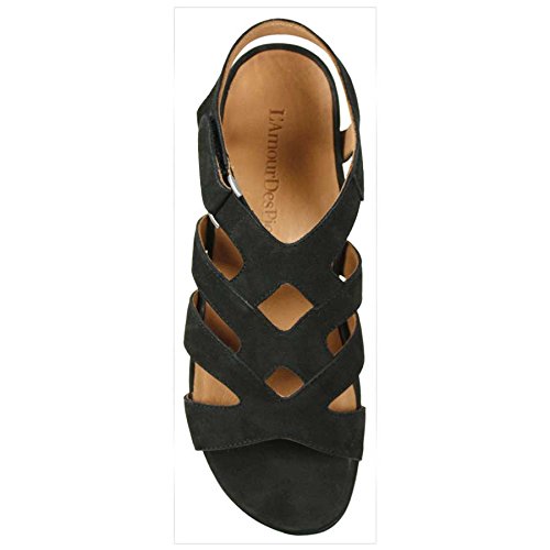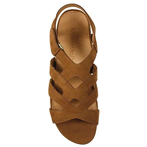 Binding : Apparel Product Description Travel in style whether it be to an art festival the grocery a wine Bistro or BBQ in this strappy flat sandal. The soft nubuck upper and velcro strap make for out of box easy wear-ability. Discover the beauty of comfort with the Denisha from L'Amour Des Pieds. Find all day comfort with the patent-pending adaptable memory foam arch support designed to expand and contract with the contours of your feet. Full nappa leather lining added for breathability and comfort. 0
