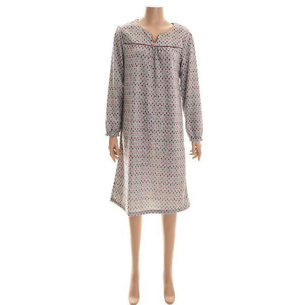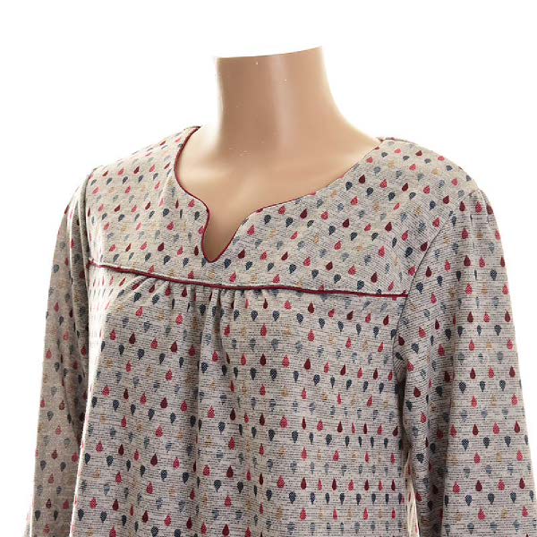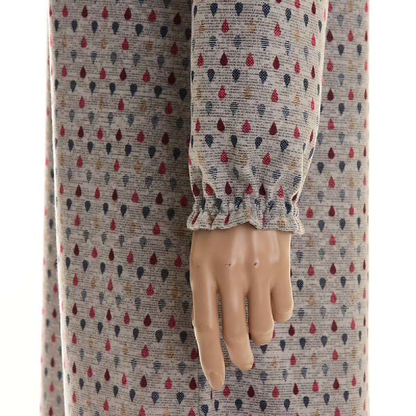 그레이 바탕에 컬러풀한 물방울 토드로 포인트를 준 여성 폴리기모 원피스 세트입니다.
