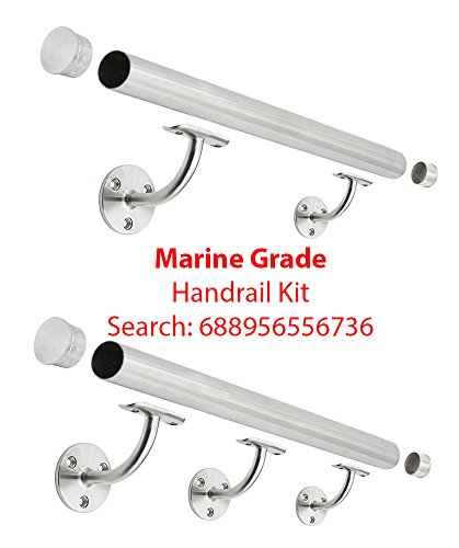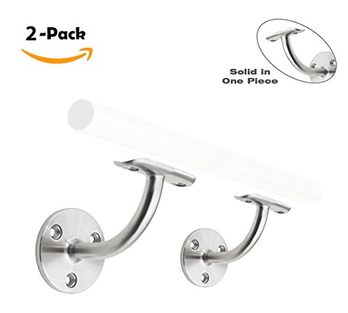 Stainless Steel 316 [Marine Grade] Wall Mount Handrail Bracket for Wood & Metal Stair Railing, Support 1-1/2" or 1-5/8" OD Round Tubing, 2-Pack