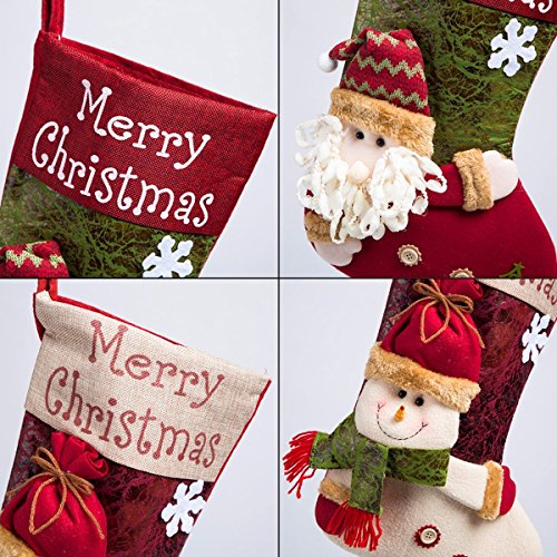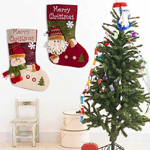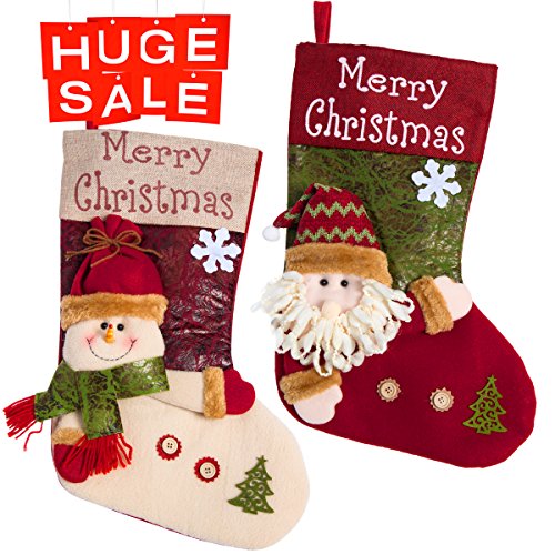 3D Plush Classic Christmas Stockings Christmas Party Decoration Gift Bag Christmas Stocking, 2 Pack 18"