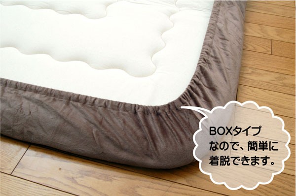 厚み20~40mmのボリュームタイプのカーペットに対応したカバーです。ボックスタイプなので脱着も簡単です。洗濯機丸洗い可能なので清潔にご使用頂けます。表地には肌触りが良く、耐久性に優れたマイクロファイバーを使用しています。