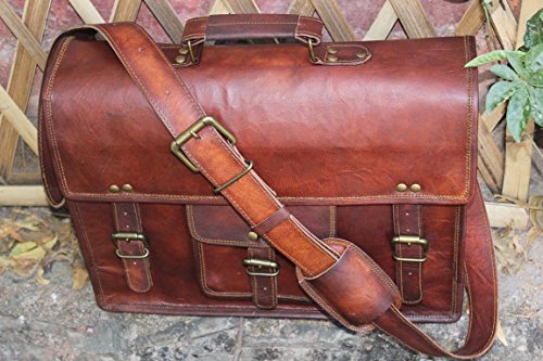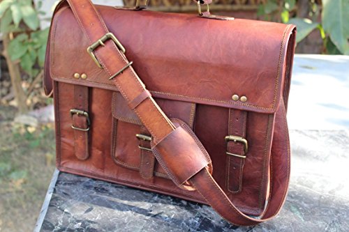 -. Title : handolederco. Vintage Leather Laptop Bag 15" Messenger Handmade Briefcase Crossbody Shoulder Bag