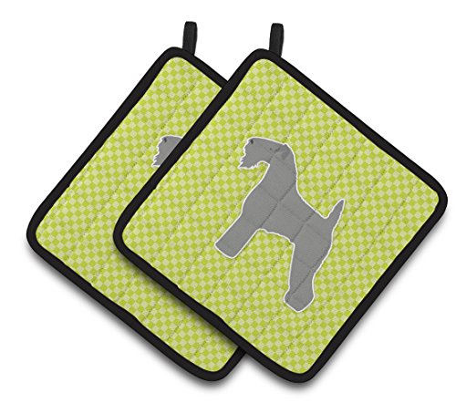 Caroline's Treasures Kerry Blue Terrier Checkerboard green Pair of Pot Holders BB3792PTHD, 7.5HX7.5W, Multicolor