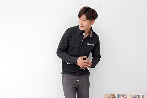 A 아이 도트 맨즈 폴로 셔츠 polo T셔츠 영국풍 골프 껴입은 옷풍 신축성 (02.L,그레이)