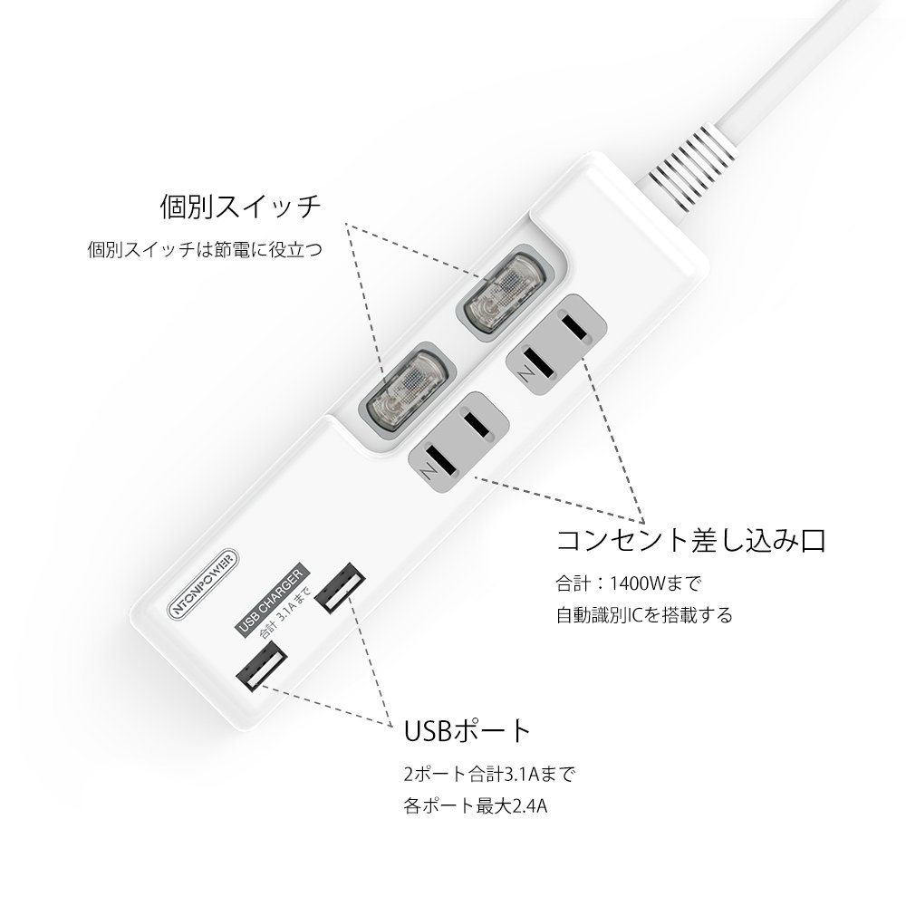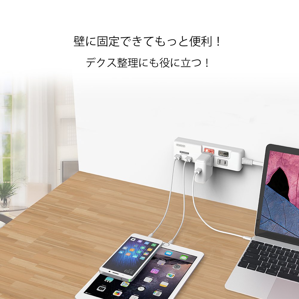Unlike general power strips, we installed two USB ports besides an AC outlet.