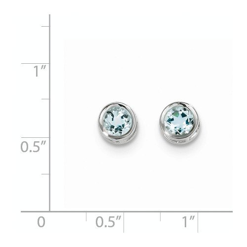14k White Gold 5mm Bezel Aquamarine Stud Earrings, Gem Ctw.1