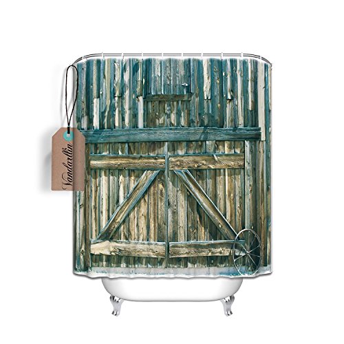 Rustic Country Barn Wood Door Designs Fabric Bathroom Shower Curtain with Hook,Waterproof and Mildewproof Washable,Antique Theme,Extra Long Size 72 x 84 Inch,Teal Green