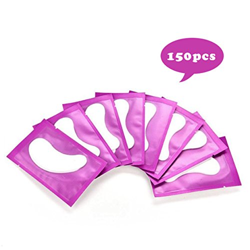 Lint Free Lash Extension Eye Gel Patches, Under Eye Pads Patches Tips Sticker Wraps for Eyelash Extension Eye Mask, 150 Pairs (purple)