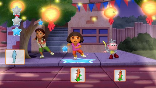 Family-friendly dance routines layed out in easy-to-follow dance move pictorials on every screen along with song lyrics