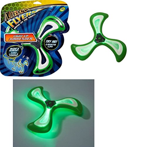 First Grip onto any wing of the Airbender, than aim and release with a flick of your wrist. Watch as it slices powerfully through the air! Then, flip the switch and the whole thing lights up bright with glowing green light for long lasting nighttime flight! Night Flyer has a Soft Rubber Grip & can flyup to 100 Yards. Fun to throw & Easy to Catch! Night Flyers, Bring on the Night!