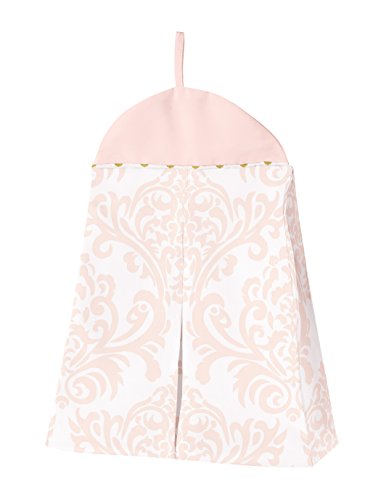 -. Feature : 9 Piece Set Includes: (1)Crib Blanket, (1)Bumper, (1)Fitted Sheet, (1)Skirt, (2)Window Valances, (1)Diaper Stacker, (1)Toy Bag and (1)Throw Pillow / **Sweet Jojo Designs also offers an 11 piece bumperless set / This bedding set combines a delicate blush pink and white damask, a coordinating metallic gold polka dot, and solid blush pink and white cotton. / This set is made of 100% cotton and is machine washable. / This design has matching accessories such as hampers, lamp shades, window treatments and wall decor
