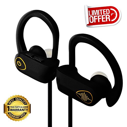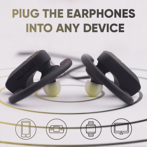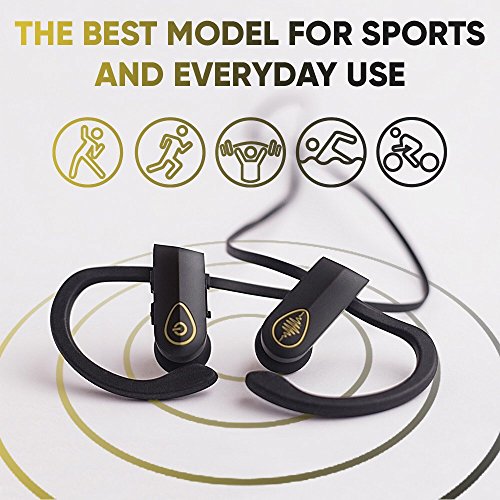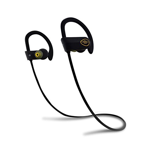 Electrics Solution Bluetooth Headphones Wireless Headphones Bluetooth 4.1 w/ Mic, IPX7 Waterproof, HD Stereo Sweatproof Earbuds, for Gym Running Workout, Noise Cancelling Headsets (Black-Golden)