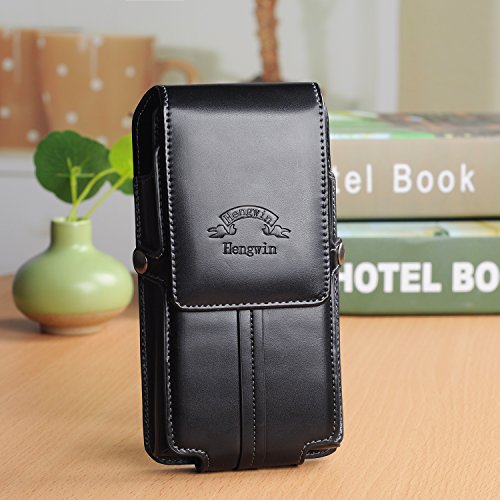 iPhone 6s Plus Holster,Hwin Vertical High Grade Smooth Leather Holster Belt Clip Pouch Carrying Case with Card Slots for iPhone 6 Plus Galaxy Note 5 4 3 S6 Edge LG G4/G3+Free Keychain(5.5 inch_Black)