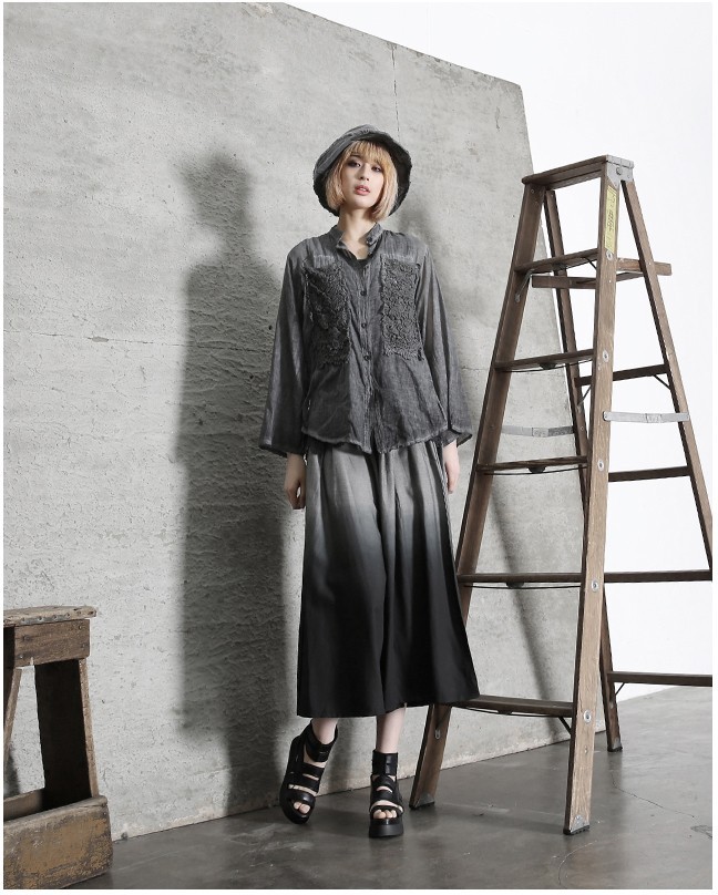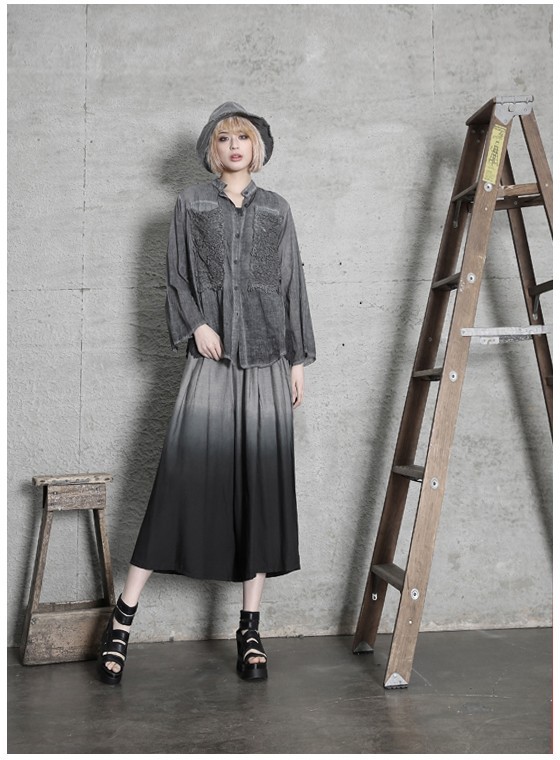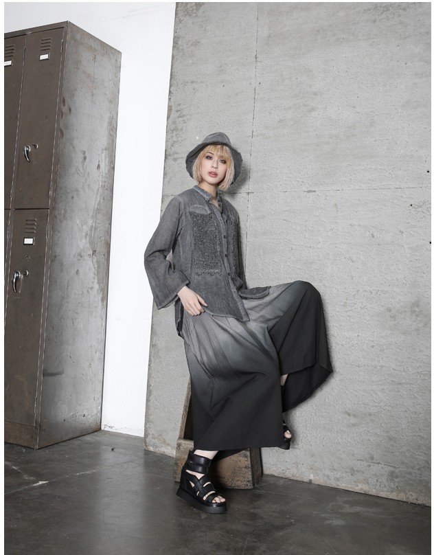 商品名:ワイドパンツ レディース ガウチョパンツ ウォッシングカラー 春 2018 モード系 個性的 40代 ファッション