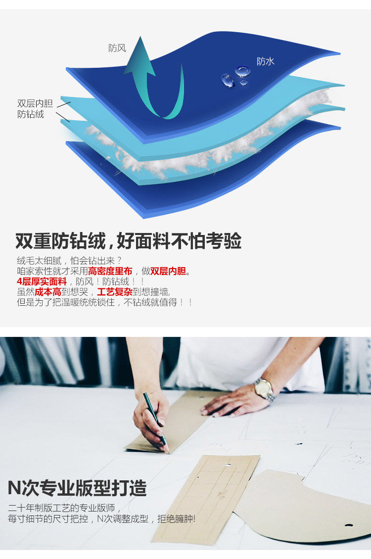 | 面 料:锦纶里 料:聚酯纤维 内胆布: 聚酯纤维 填充物:白鸭绒(含绒量90%)鸭绒克重: XS:184g S:191g M:198g L:205g颜 色:豆沙粉 |