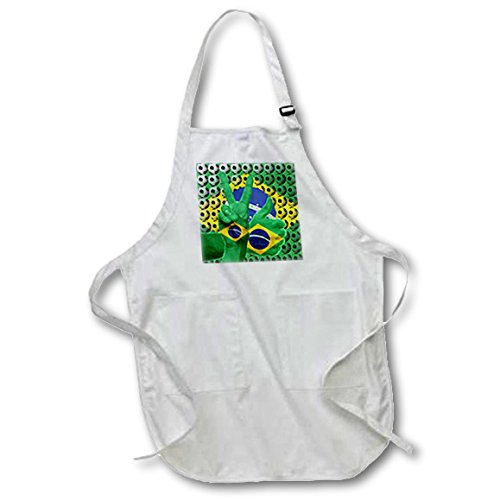 3dRose apr_210434_4 Flag of Brazil Pride & Soccer Champions Full Length Apron with Pockets, 22 by 30", Black