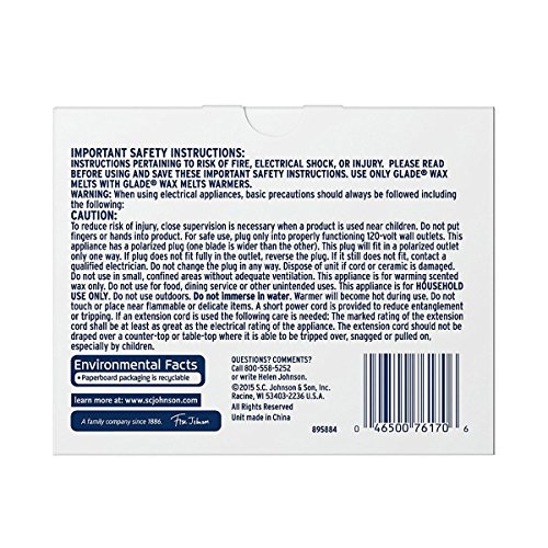 Studio : Glade Publisher : Glade Binding : Health and Beauty Product Description The perfect fragrance can make our great rooms even greater. Glade Wax Melts Warmers fill even the largest rooms with fragrance with a stylish, electric table-top warming dish. Available in a wide variety of your favorite Glade scents. Wax Melt Warmers and Refills sold separately. 0