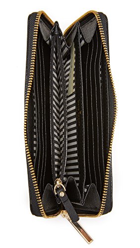 Product Description A sophisticated Kate Spade New York wallet in a colorblock mix of leather and straw. Slim back pocket. Wraparound zip and lined interior with 12 card slots, 2 cash pockets, and a middle zip compartment. 0