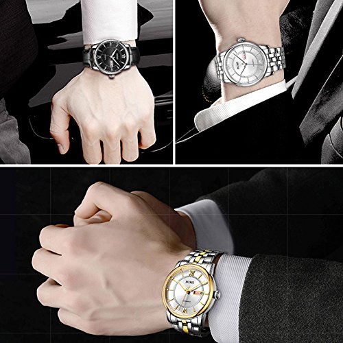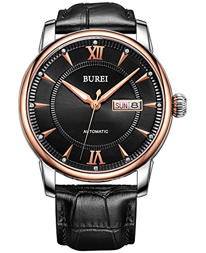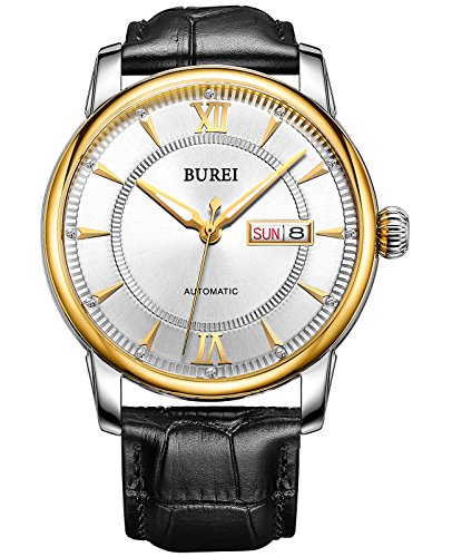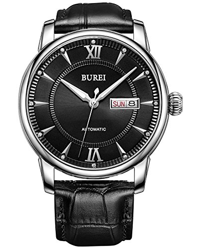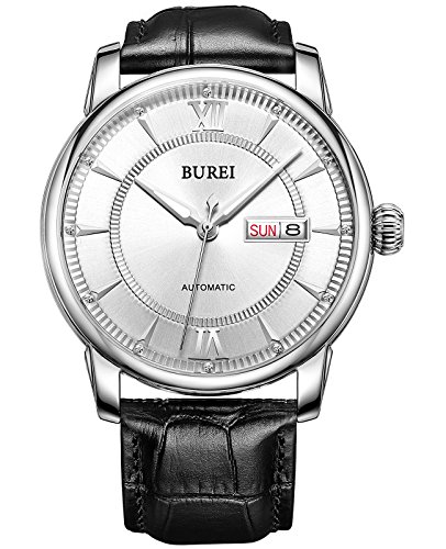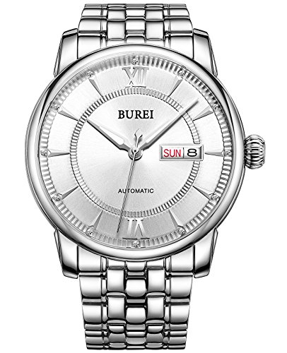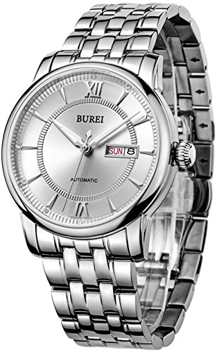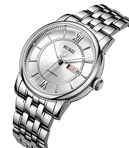《바오쇼》 (바오쇼)BUREI 손목시계 맨즈 야광 날짜 일요일 자동 감기 시계 스테인레스 케이스 화이트 문자판