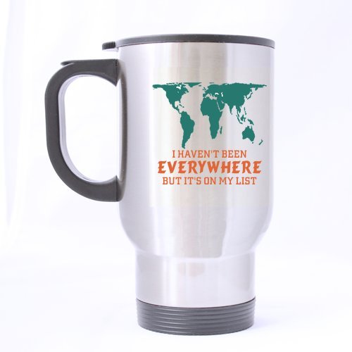 -. Title : Best Travel Quotes Mug - Funny Novetly I Haven't Been Everywhere But It's On My List Stainless Steel Travel Tea Mug/Tea Cup - 14 Oz