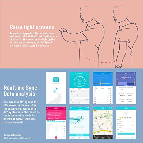 1, Bluetooth intelligentes Armband, IP67 wasserdichte Herzfrequenzmonitor-Eignungverfolger-vollkommene Kompatibilitat: Handy IOS 8.0, Android 4.4 oben.