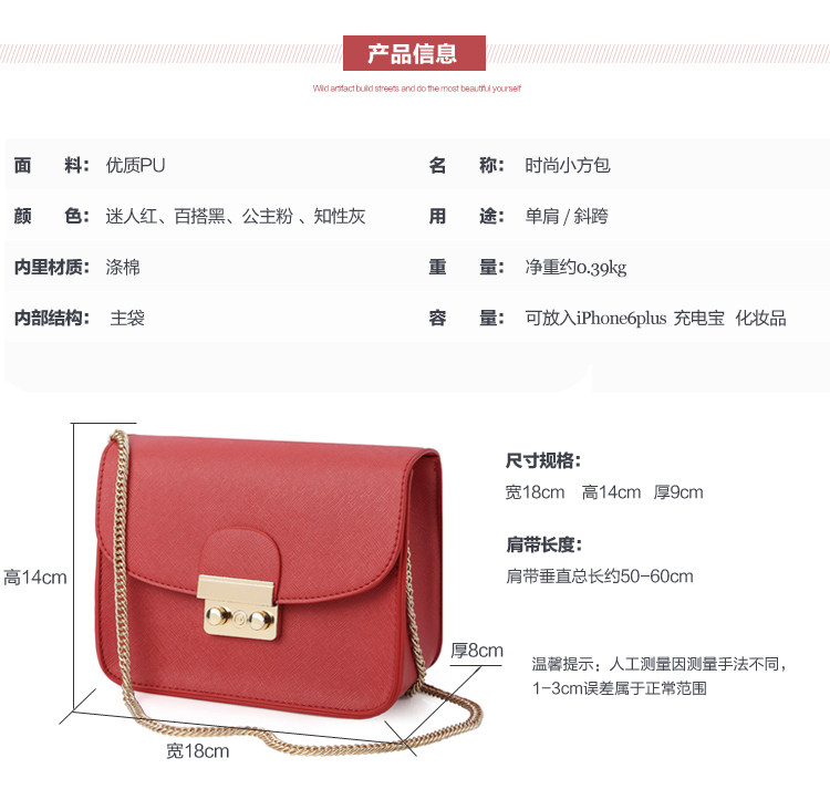 このバッグはミニバッグで、横18 cmの高さ14 cm。纯チェーンバーは片肩に肩を张りかけ、全长は125センチです。私达のチェーンはすでにアップし