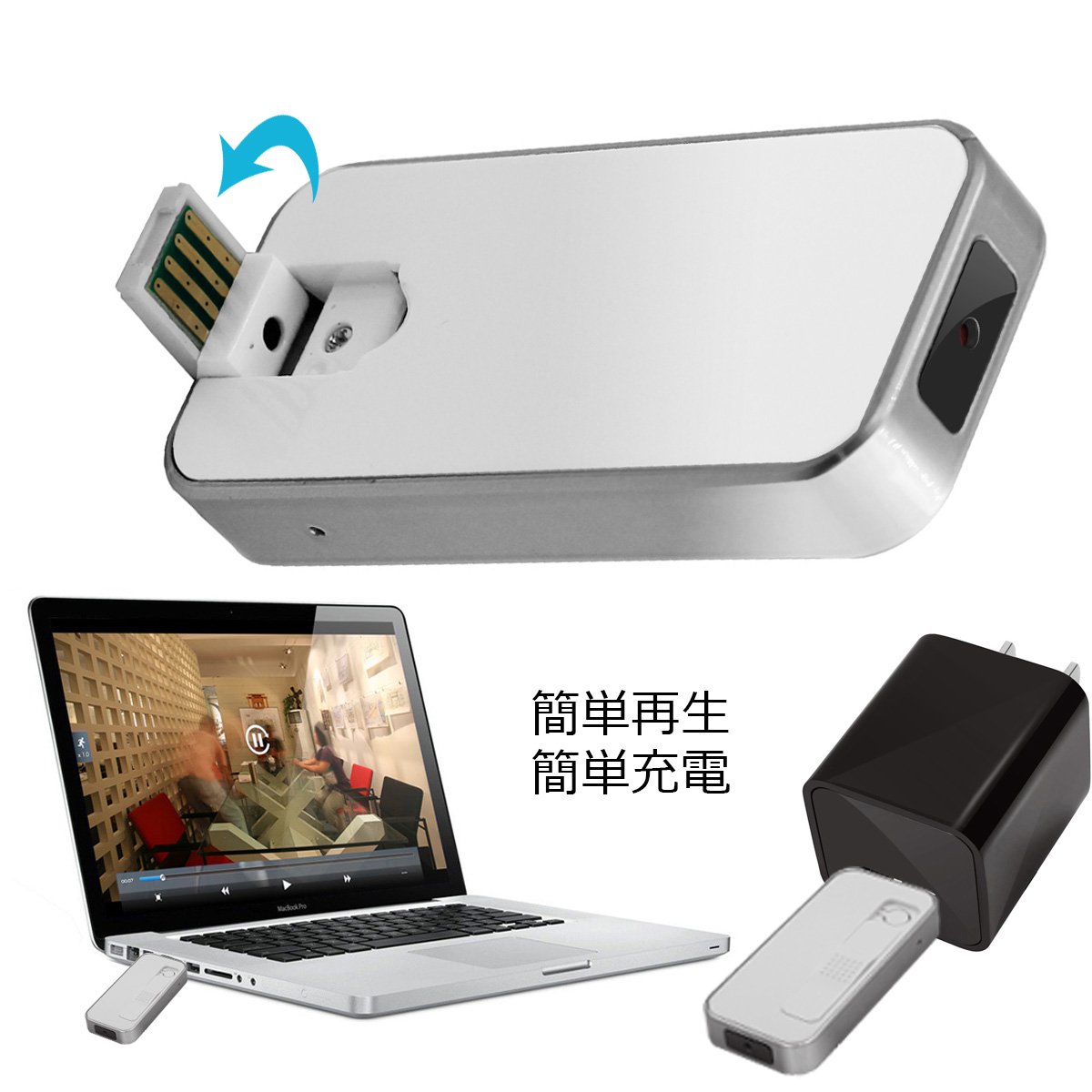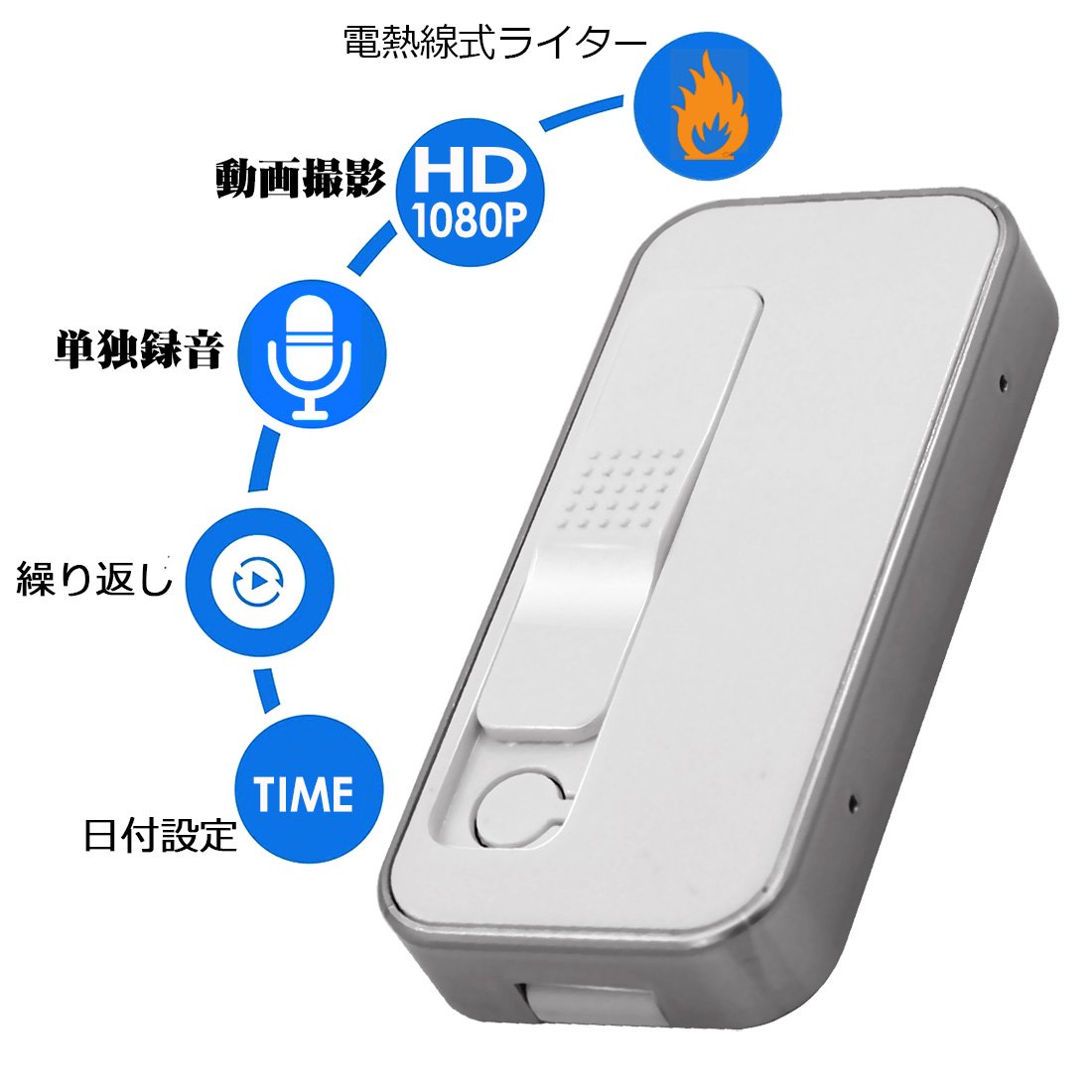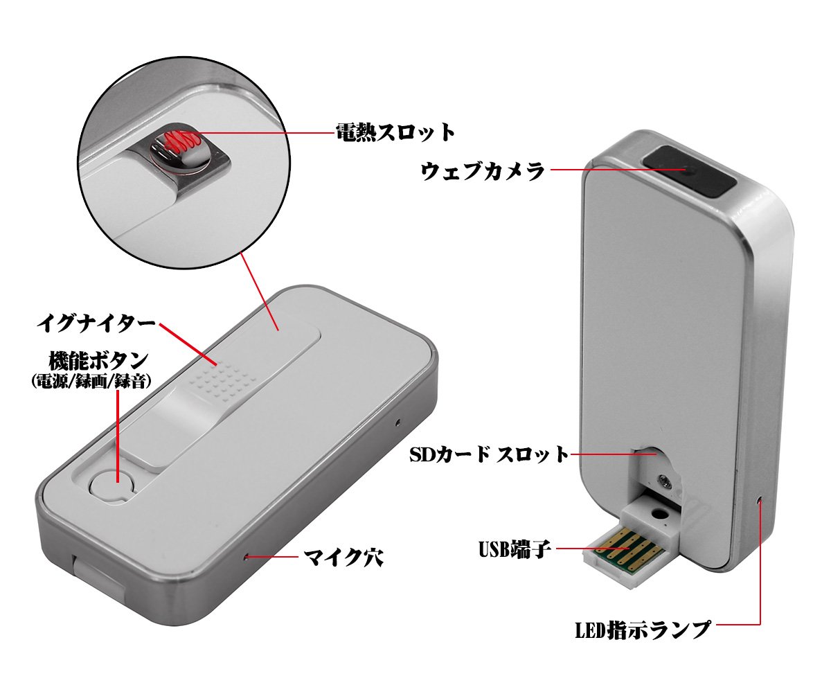 【Product function】 Movie shooting / Single voice recording / Vibrating function / Recording lamp off Model / One push easy operation WEB camera / High sound quality microphone / Date change function.