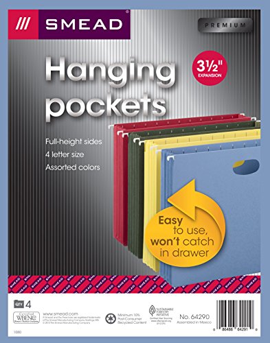 -. Title : Smead Hanging Pocket, 3-1/2" Expansion, Letter Size, Assorted Colors, 4 per Pack (64290)