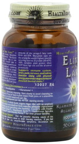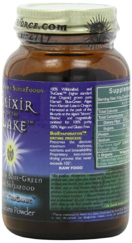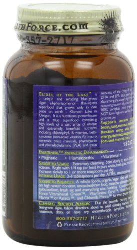 Elixir Of The Lake 50 gm Klamath Blue-Green Algae Superfood Energetically enhanced: Magnetic, Homeopathic, Vibrational. Elixir of the Lake™ is a unique and amazing blue-green algae (Aphanizomenon flos-aquae) superfood that grows only in one place on earth - Klamath Lake in Oregon. It is a nutritional powerhouse and a true superfood containing high levels of a vast array of unique and extremely beneficial nutrients including chlorophyll, B vitamins, Beta-Carotene (non-toxic Vitamin A), macro minerals, trace minerals, Phycocyanin and Phenylethylamine (PEA) and trace amounts of the Omega-3 fatty acids DHA and EPA. Blue-Green algae are also among the world’s highest naturally occurring sources of protein (50- 60%). 100% complete plant protein (does NOT form high uric acid like all animal proteins do). Supports immune system, brain, joint, nervous, and kidney function along with physical energy, stamina and a positive and focused mental state. “The quality, therapeutic concentration, and affordability of a nutritional product can, and often does, mean the difference between lethargy and energy, sickness and health, and, quite literally, life and death. I don’t want anyone to be tired, sick or dead because they could not obtain or afford the best possible product. If someone does not feel this same way, they should not be in the nutritional product business.Feature