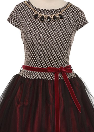 Lovely short sleeve dress that comes with a beautiful necklace. Waist is accented with a velvet sash that can be tied into a beautiful bow. The overlay tulle skirt gives extra pizzazz to this lovely dress.