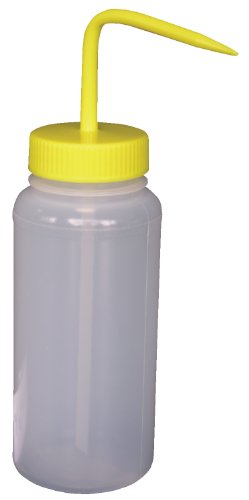 Vestil BTL-WW-16Y Wide Mouth Low Density Polyethylene (LDPE) Round Squeeze Wash Bottle with Wide Neck and Yellow Cap, 16 oz Capacity, Translucent
