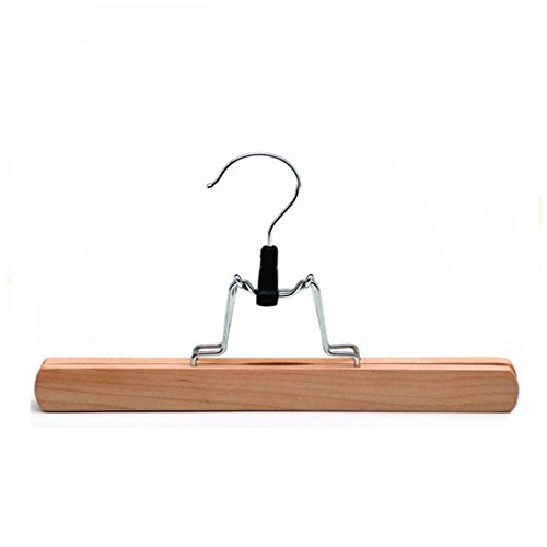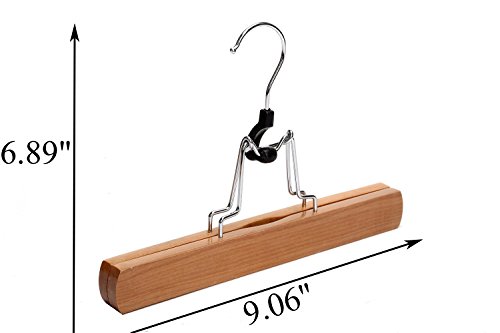 -. Feature : The anti-rust swiel hook makes it easier to turn the hanger sideways / Unique full-width gripping grooves with a plastic clamp-lock will well protect your garments, no wrinkles and creases left / Strong and durable solid wood construction with flat body can maximize your closet space easily / Smooth and beautiful natural finish design adds extra elegance / Perfect for pants, skirts, slacks and so on