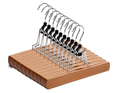 -. Title : Solid Wooden Collection Slack Pant Hangers, Wood Skirt Hangers with Anti-rust Hook, Set of 10