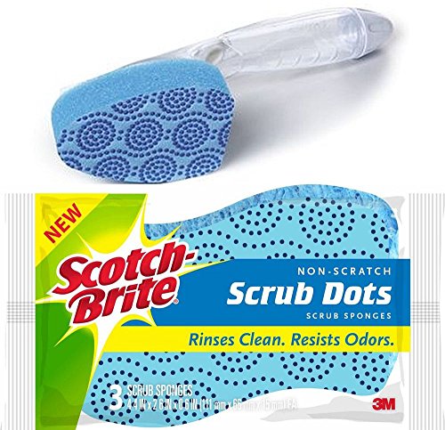 Scotch Brite Dish Wand (1) NON Scratch Scrub Dots PLUS (3) Dishwashing Kitchen Sponges Scrubber Bundle