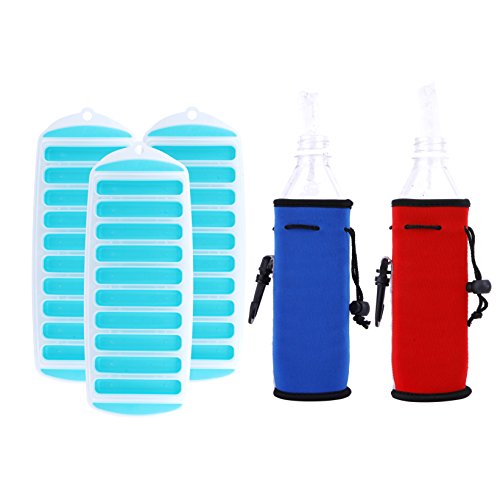 Bella Amazing- Ice Stick Tray and Water Bottle Insulator Sleeve Set. Pack of 5. Includes Set of 3 Long Ice Cylinder Molds and 2 Neoprene Sleeves. Great Value Bundle for your Thin Ice Cube Tubes. Sili