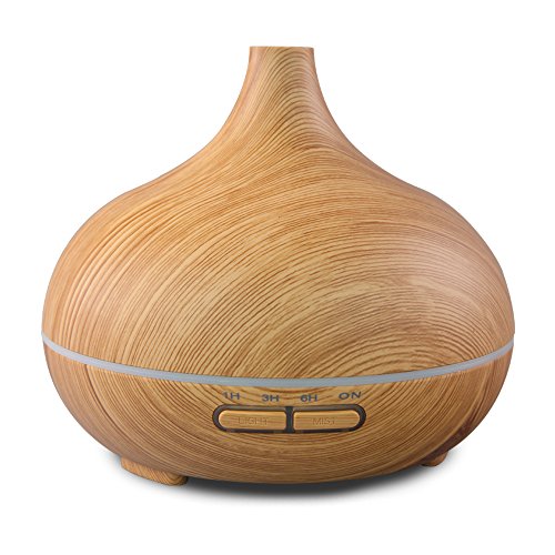 Deyajs 300ml Aroma Essential Oil Diffuser Cool Mist Humidifier for Office Home Yoga (Yellow Wood Grain)