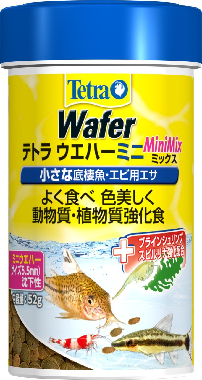 商品紹介 小型の底棲魚やビーシュリンプなどの底棲生物に食べやすいウェハータイプで食いつきが良く水に溶けにくく消化吸収が良いため水槽の水を汚さない動物質・植物質強化フードです
