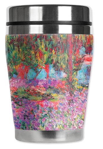 Mugzie Monet The Artist's Garden "Mini" Travel Mug with Insulated Wetsuit Cover, 12 oz, Black