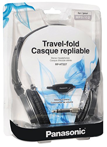 Panasonic Over-the-Ear Stereo Headphones RP-HT227 (Black & Silver) Integrated Volume Controller, Travel-Fold Design