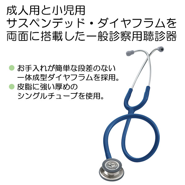 ●成人用と小児用サスペンデッド・ダイヤフラムを両面に搭載した一般診察用聴診器。