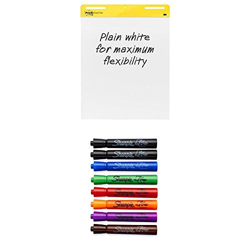 Post-it Self-Stick Easel Pad, 25 x 30.5 Inches, 30-Sheet Pad (2 Pack) and Assorted 8 Pack of Sharpie Flip Chart Markers
