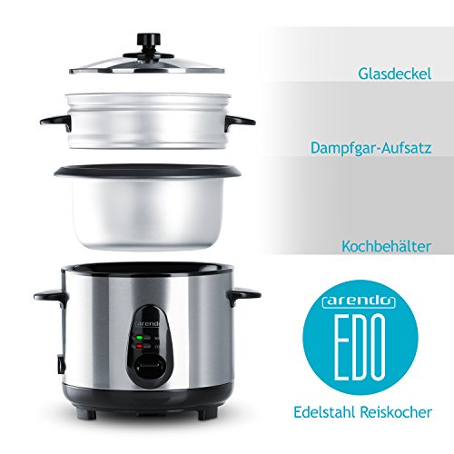 Modellbezeichnung: Arendo Edelstahl-Reiskocher mit 1,5l Kapazitat / genugend Platz fur Portionen eines Vier-Personen-Haushalts | 301225